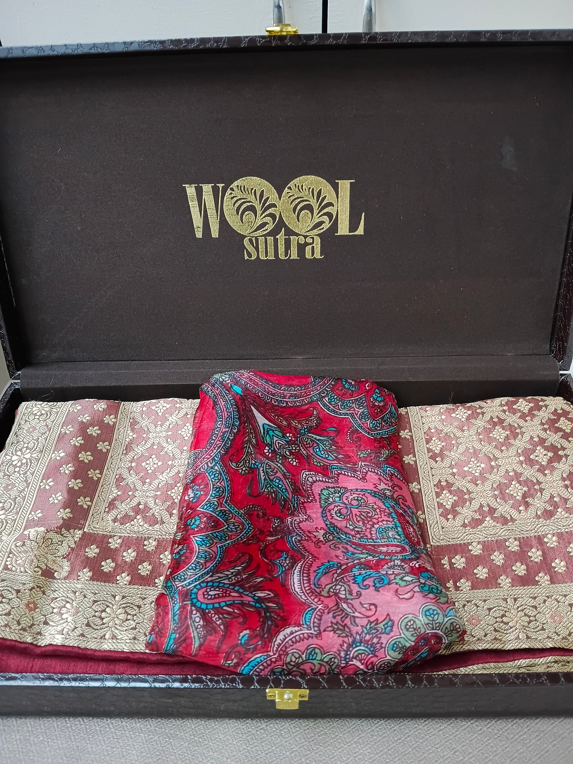 Artistic Brocade design cushion cover + Silk wool scarve Combo box
