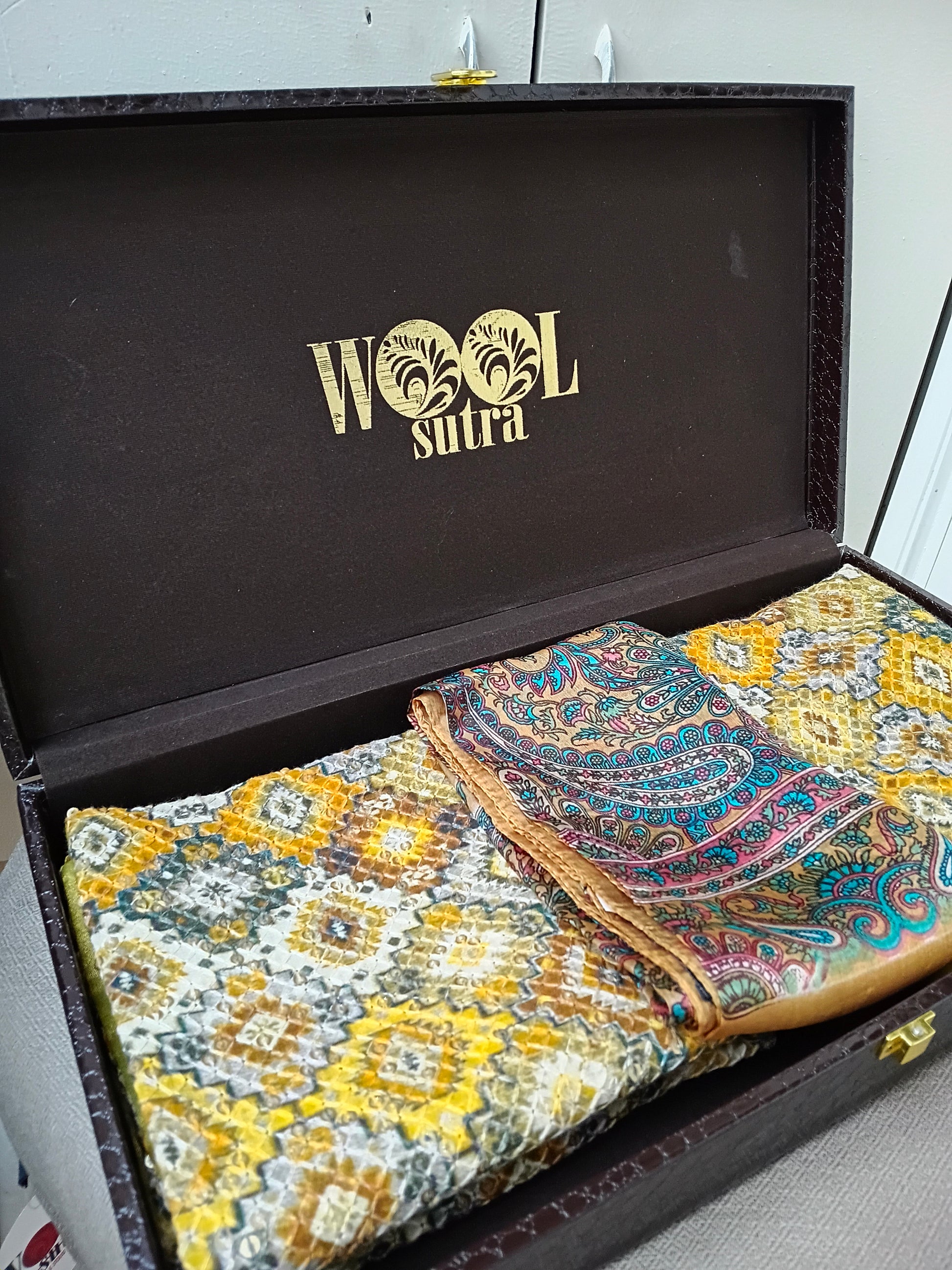 Silk with sequence work cushion cover + Silk wool scarve Combo box