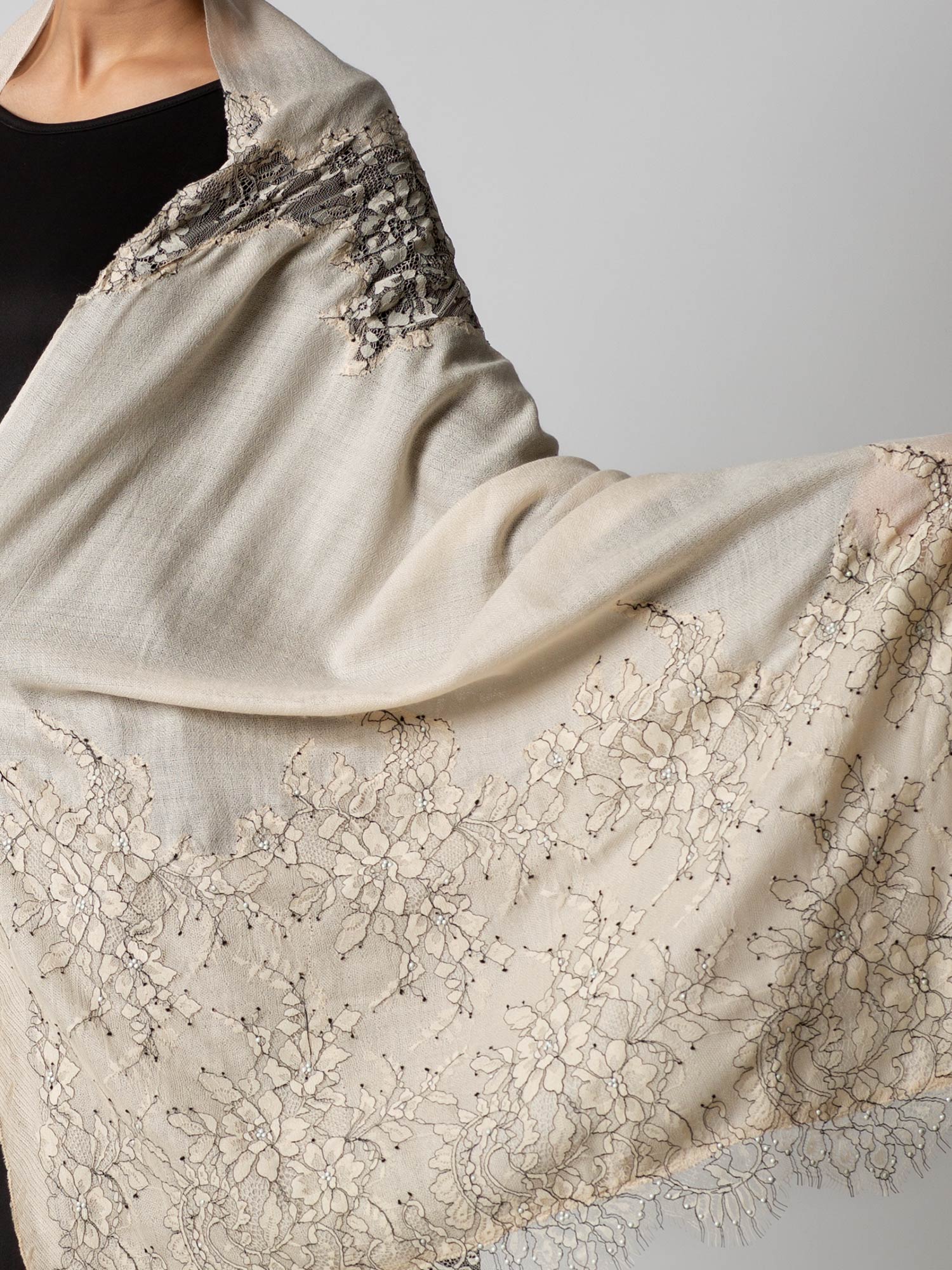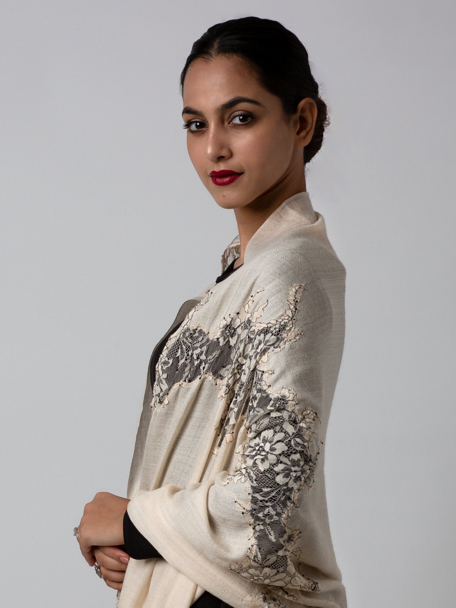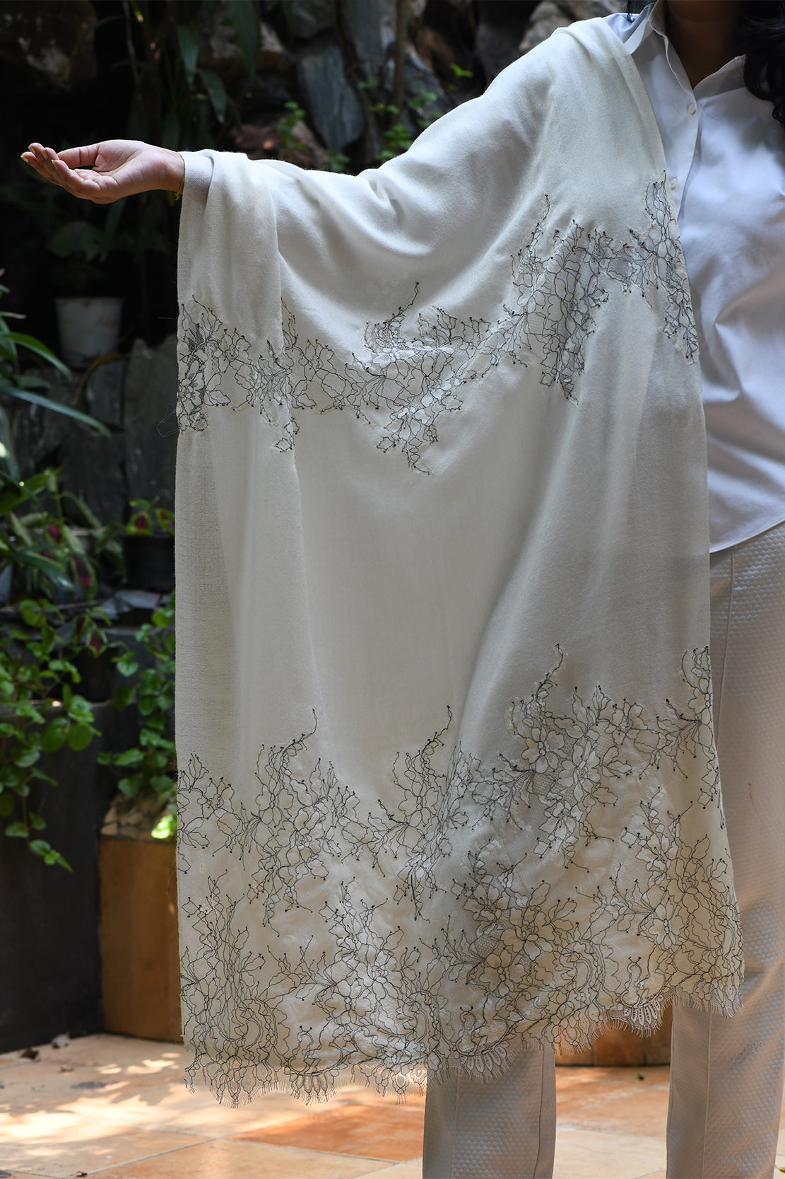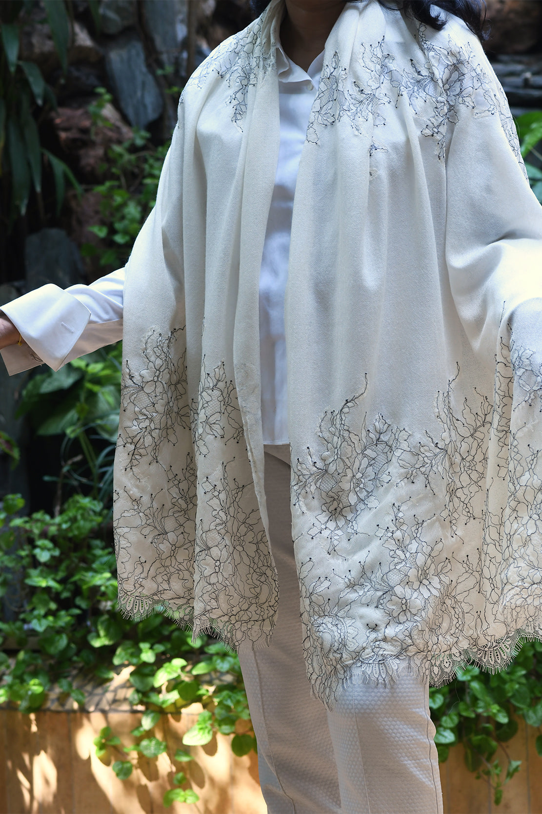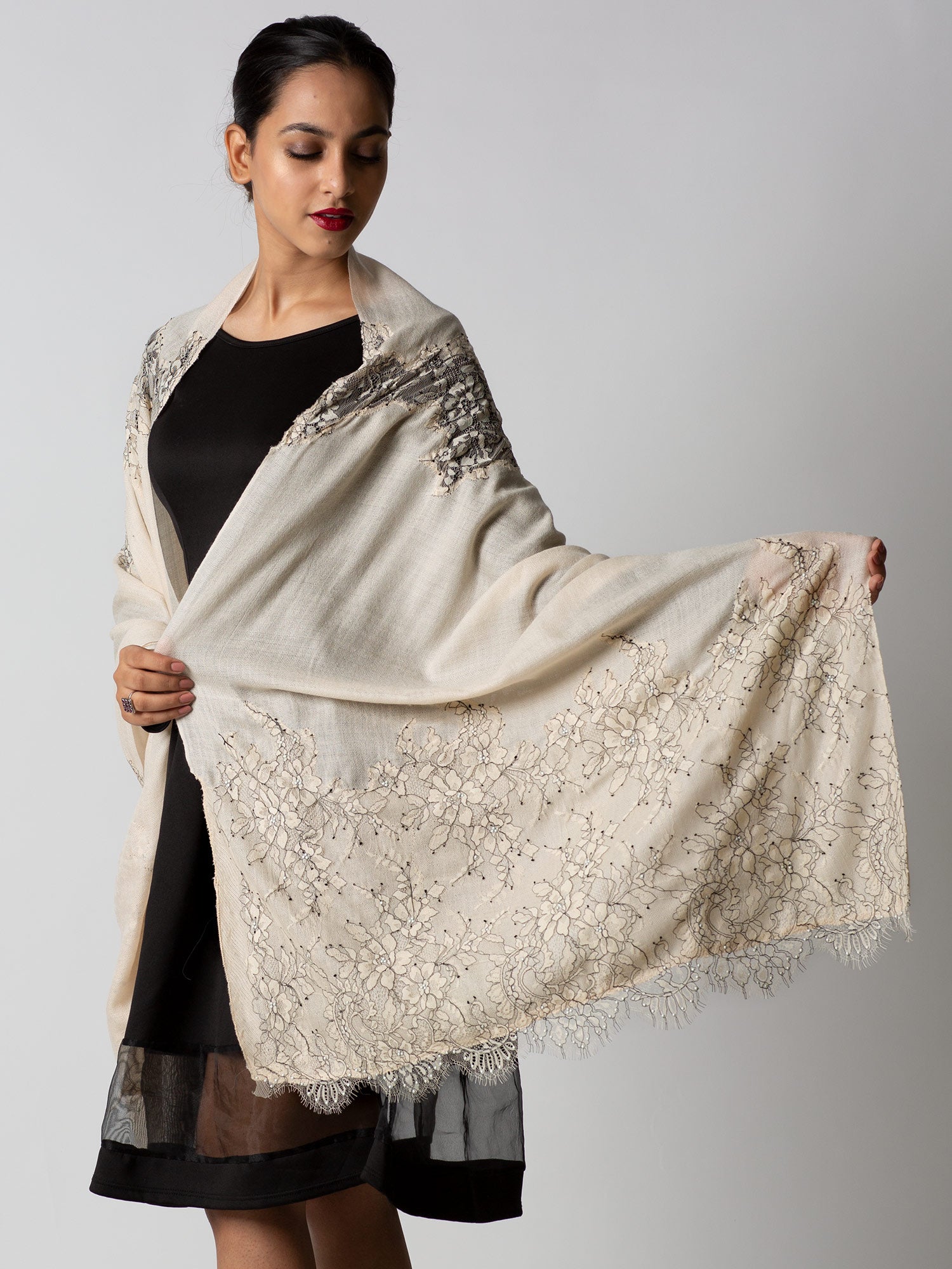 Pure Wool Lace Stole With Embroidery. Formal. One Of Our Bestsellers.
