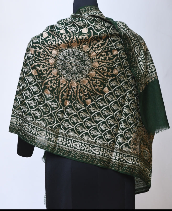 Exquisite Pure Wool Stole with All over Fine Embroidery !!!