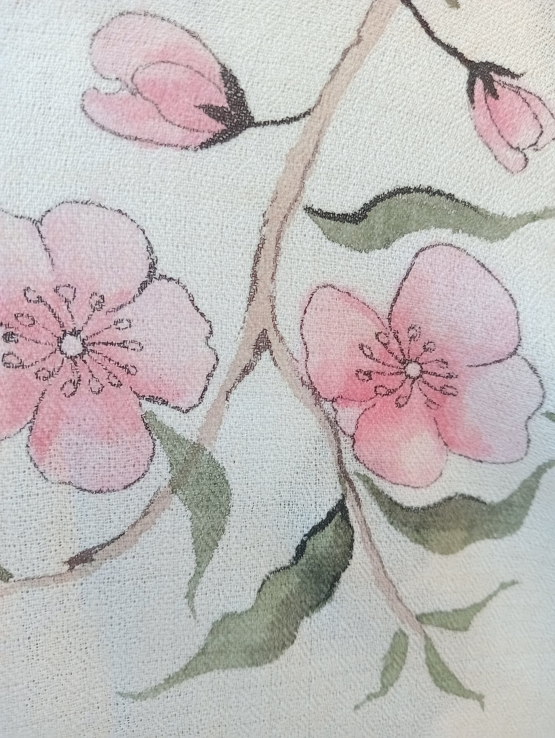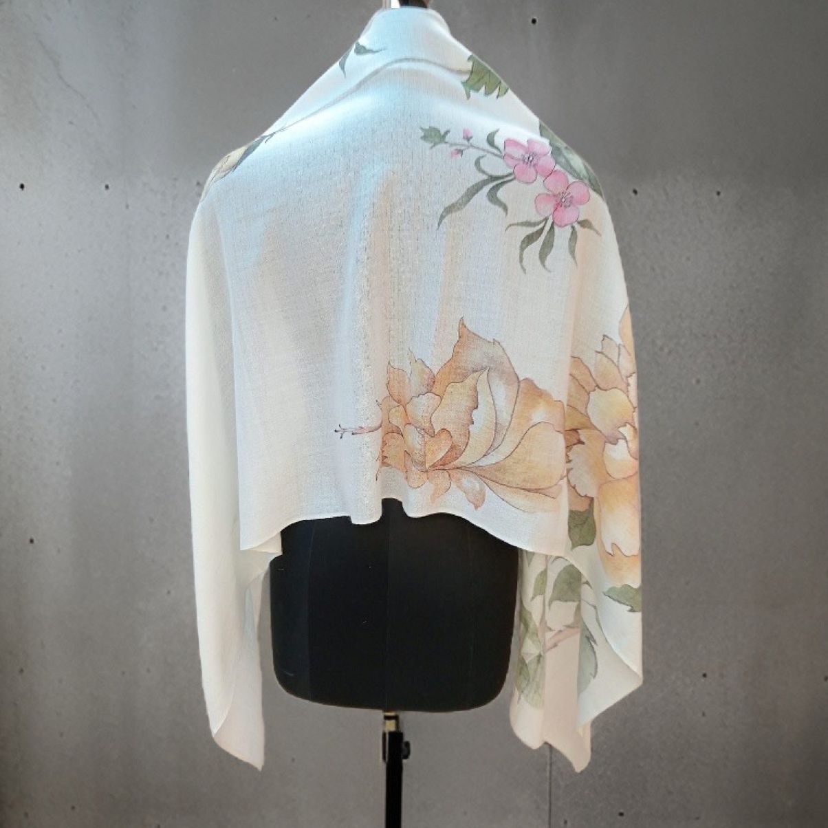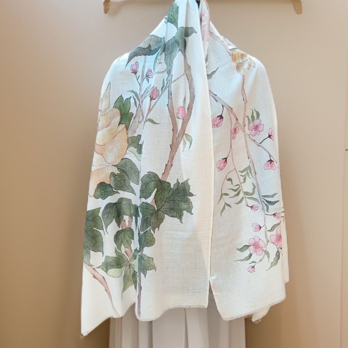Franch Hand-painted stole with beautiful colours and flowers design. elegant and easy to carry.