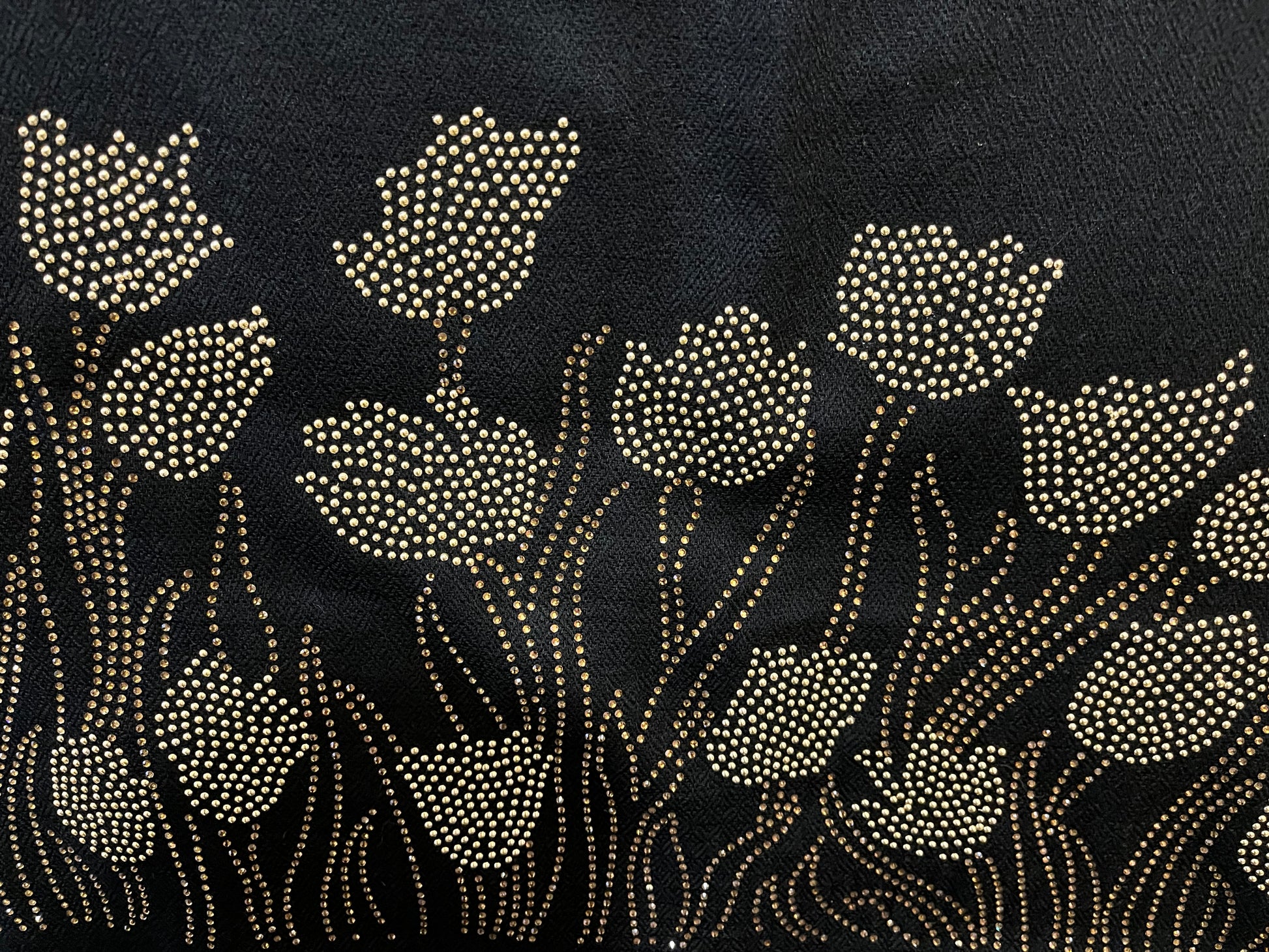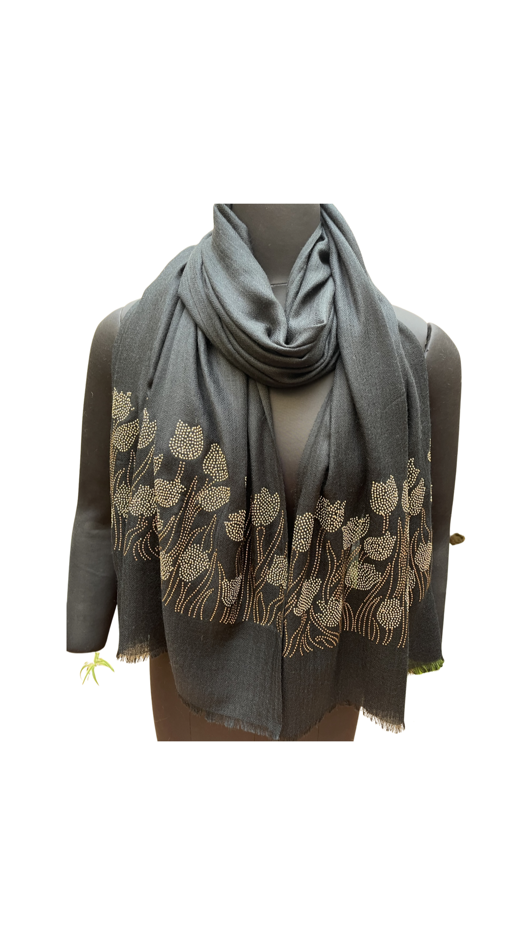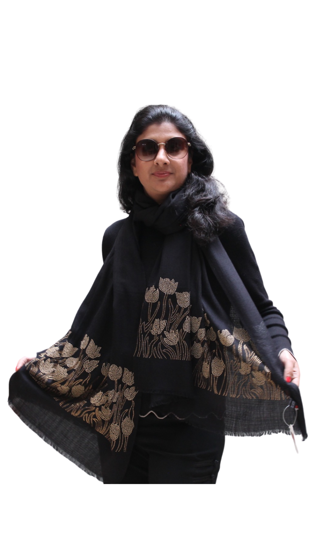Exquisite Stone Art Stole with Gold Stones and Gold Bead Work