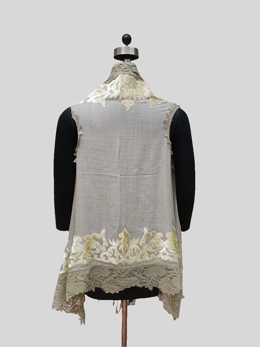 Super Fine wool velvet Applique work lace jacket
