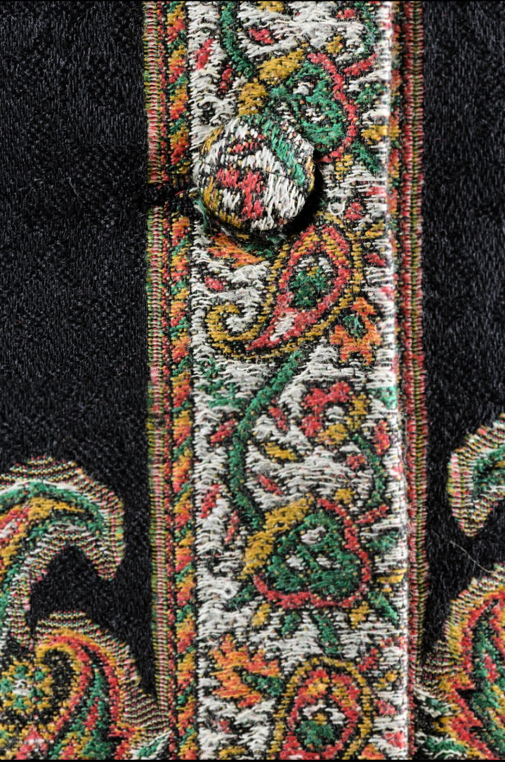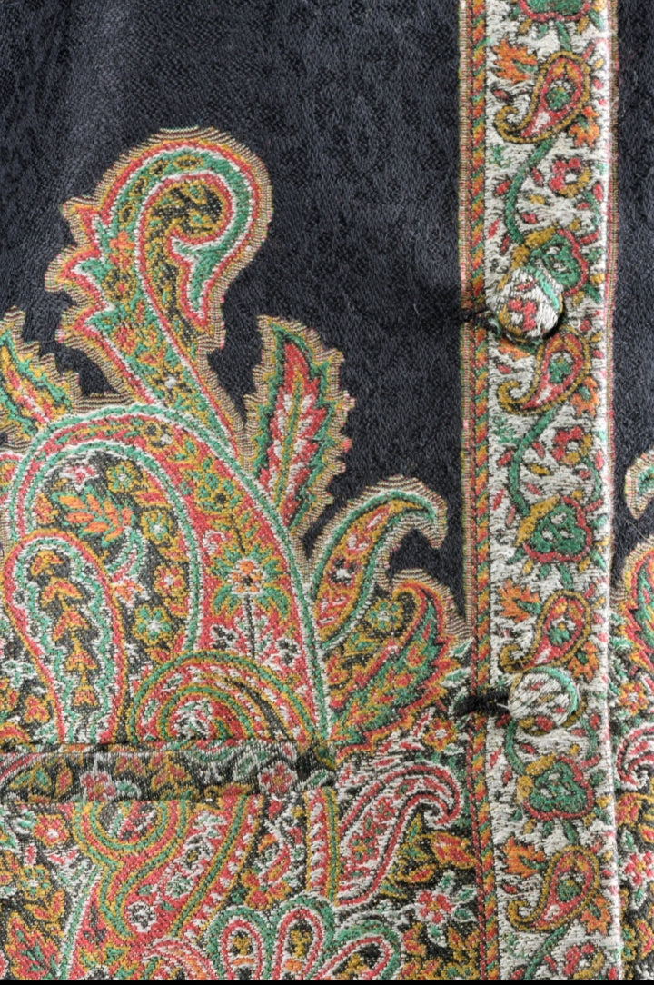 Ladies Woven Self Jacquard Jamawar Jacket - Black