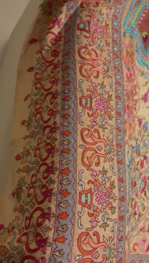Beautiful handmade Pure Silk Kalamkari Sequence Dupatta with multiple colours combination. All over kalamkari sequence work. Handmade dupatta with a lot of work and effort.