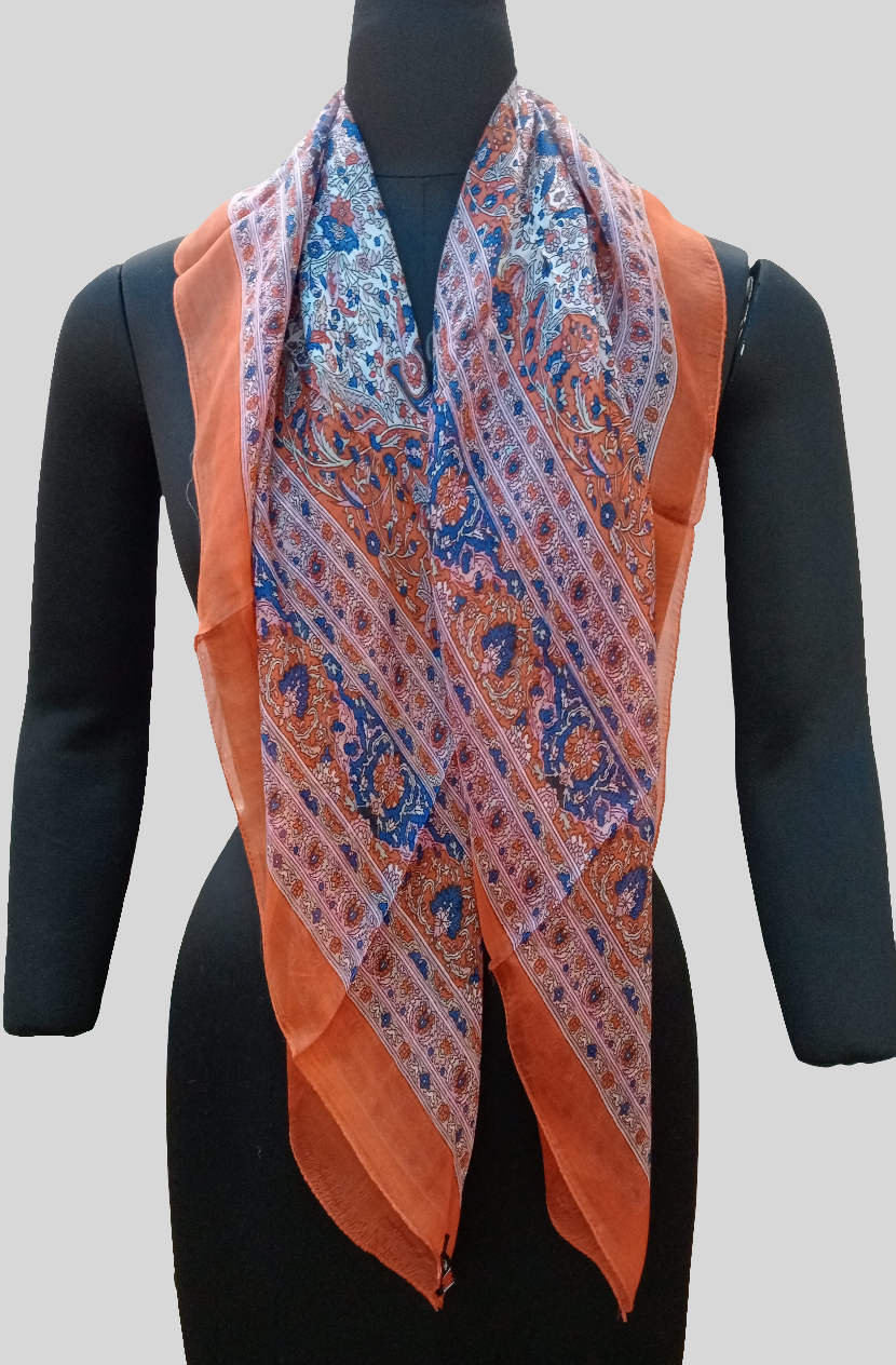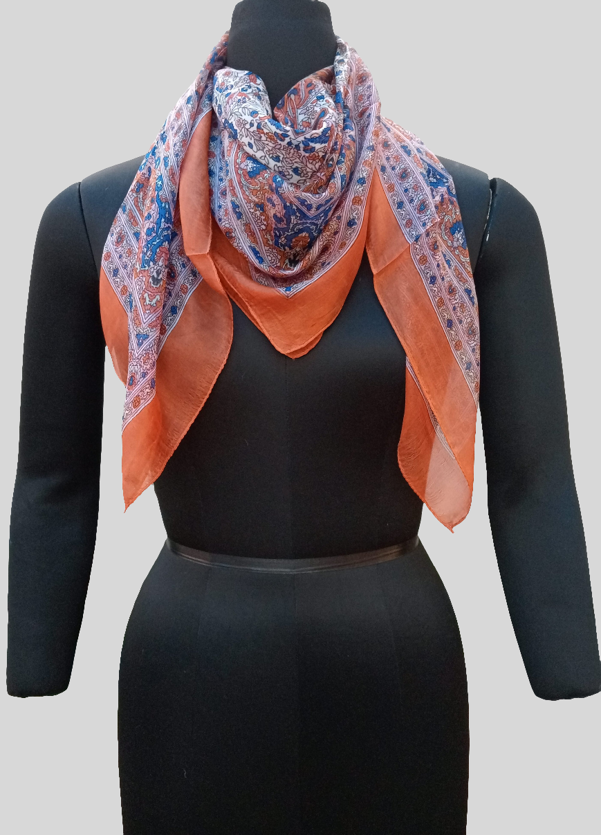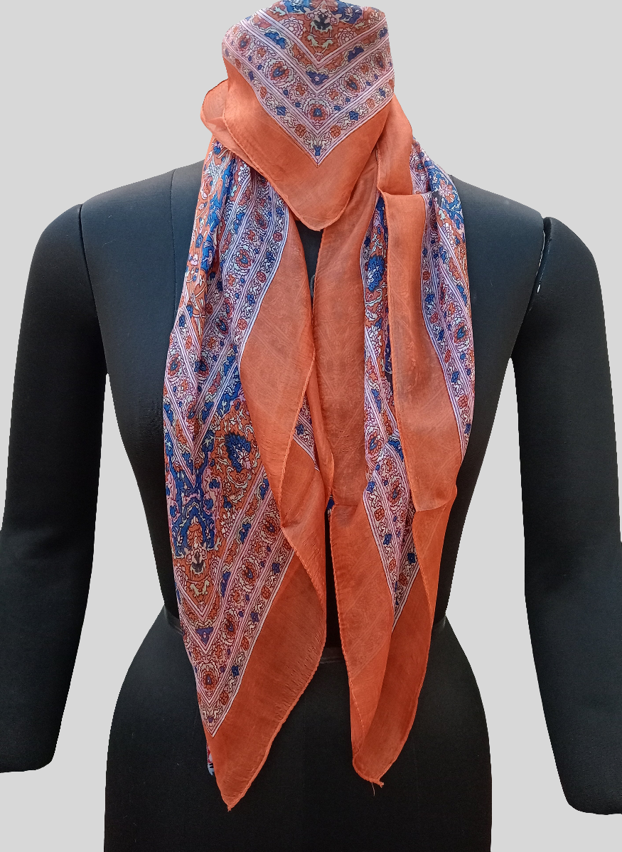 Pure silk scarf with a wonderful design. light weighted scarf, easy to carry, Affortless wearble scarf. Just like a magic in the outfit.