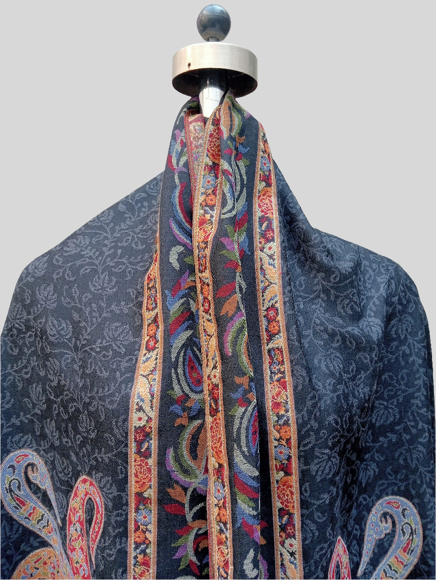 Women Self jacquard shawl with a chinar design jamawar border (40/84)