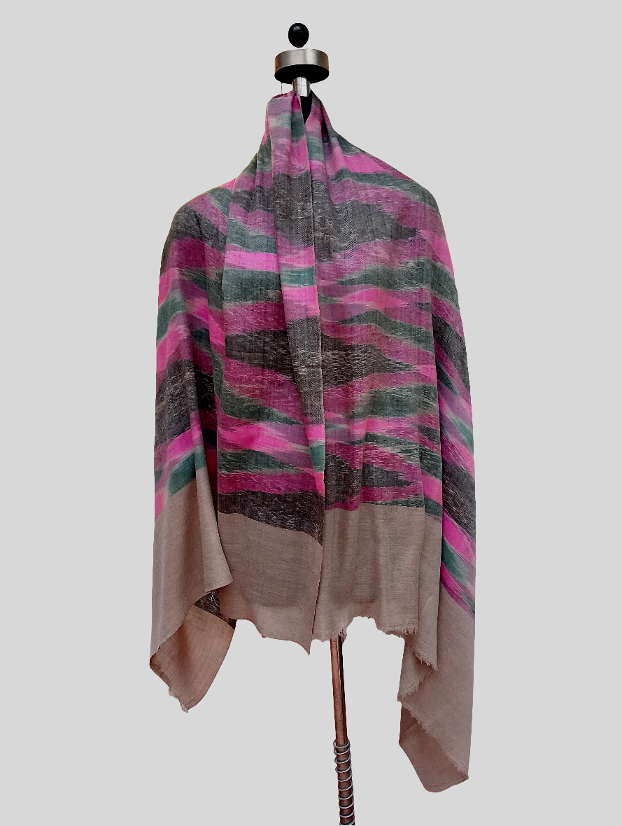 Pure pashmina multicolored ikkat design shawl