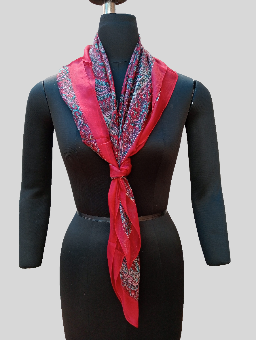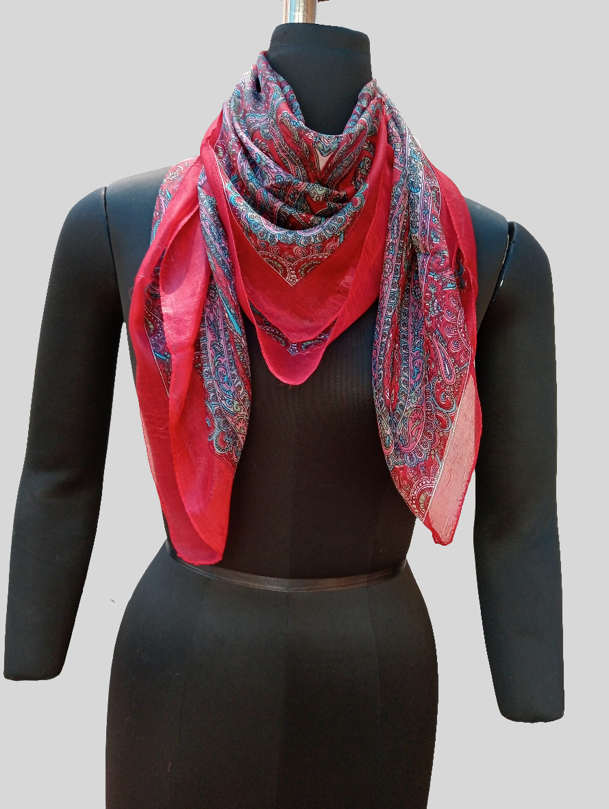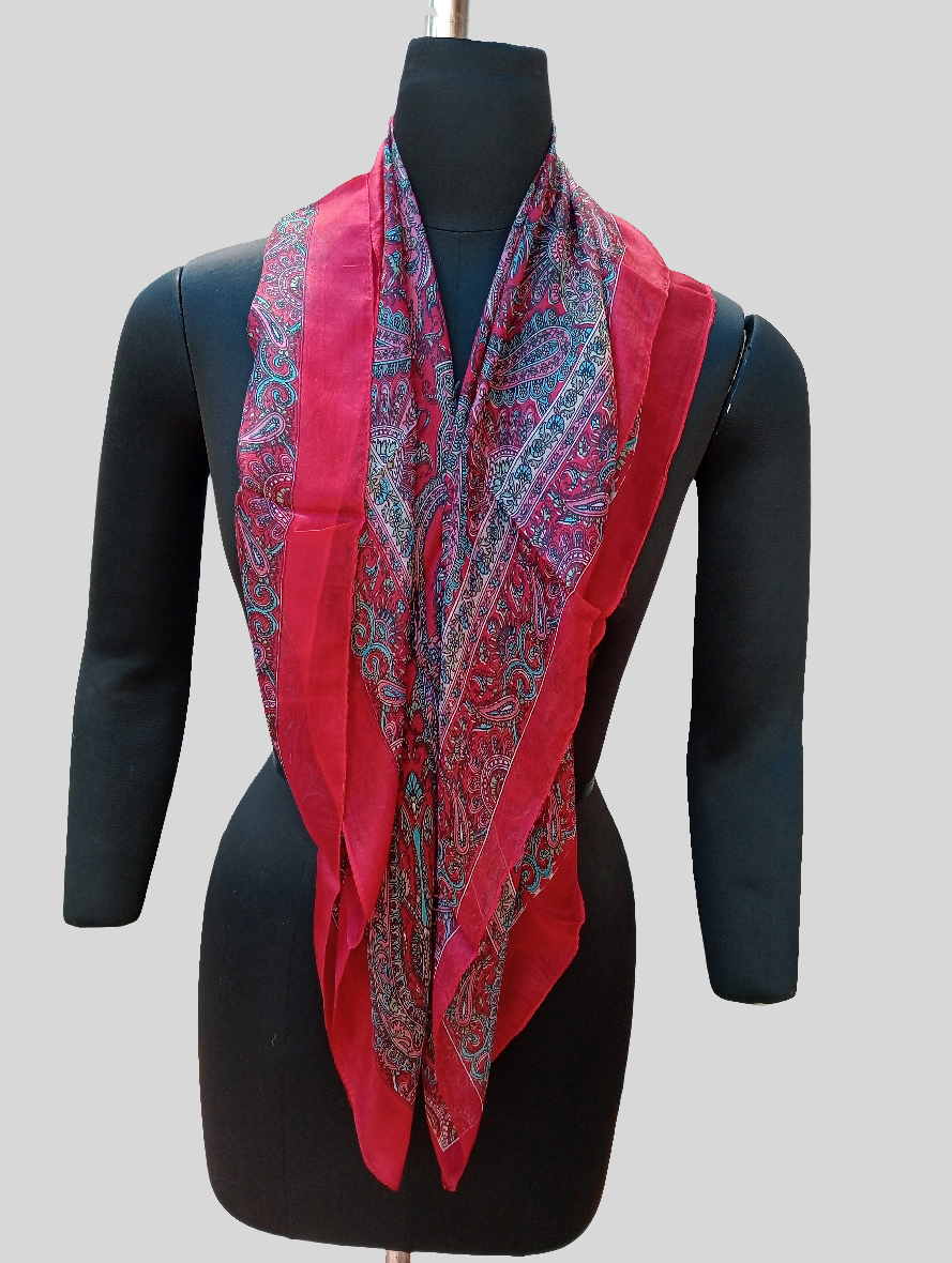 Pure silk scarf with a wonderful design. light weighted scarf, easy to carry, Affortless wearble scarf. Just like a magic in the outfit.