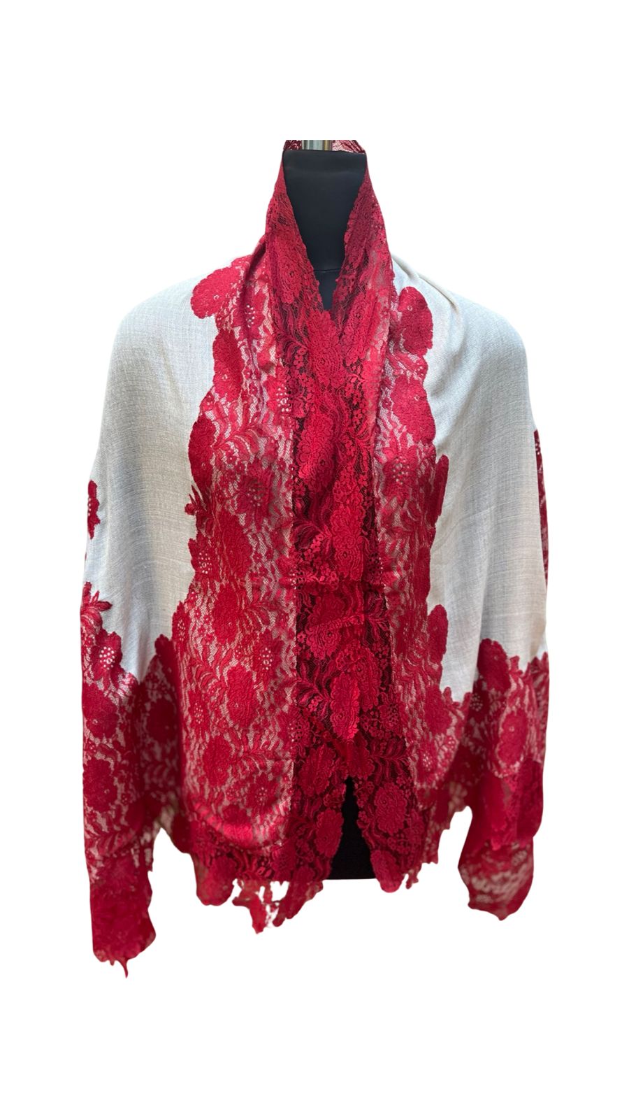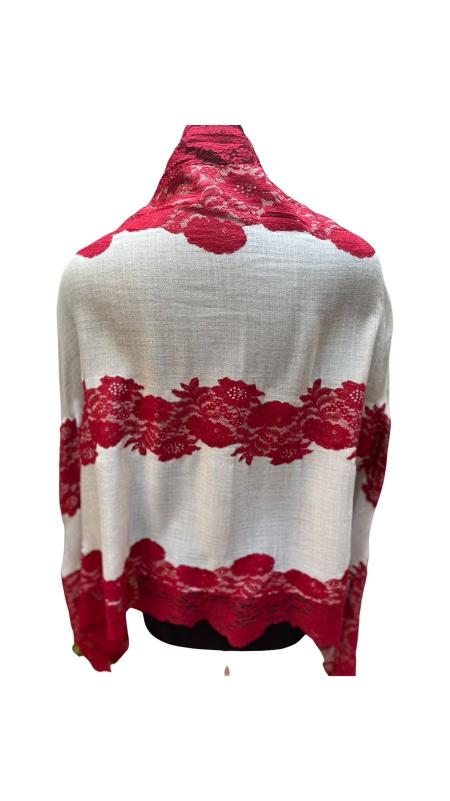 Pure Wool Stole With Lace On All 4 Sides and Middle.