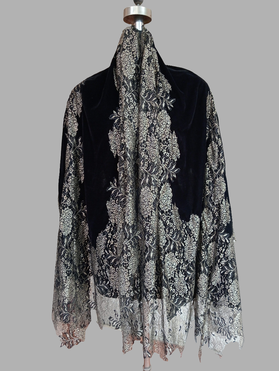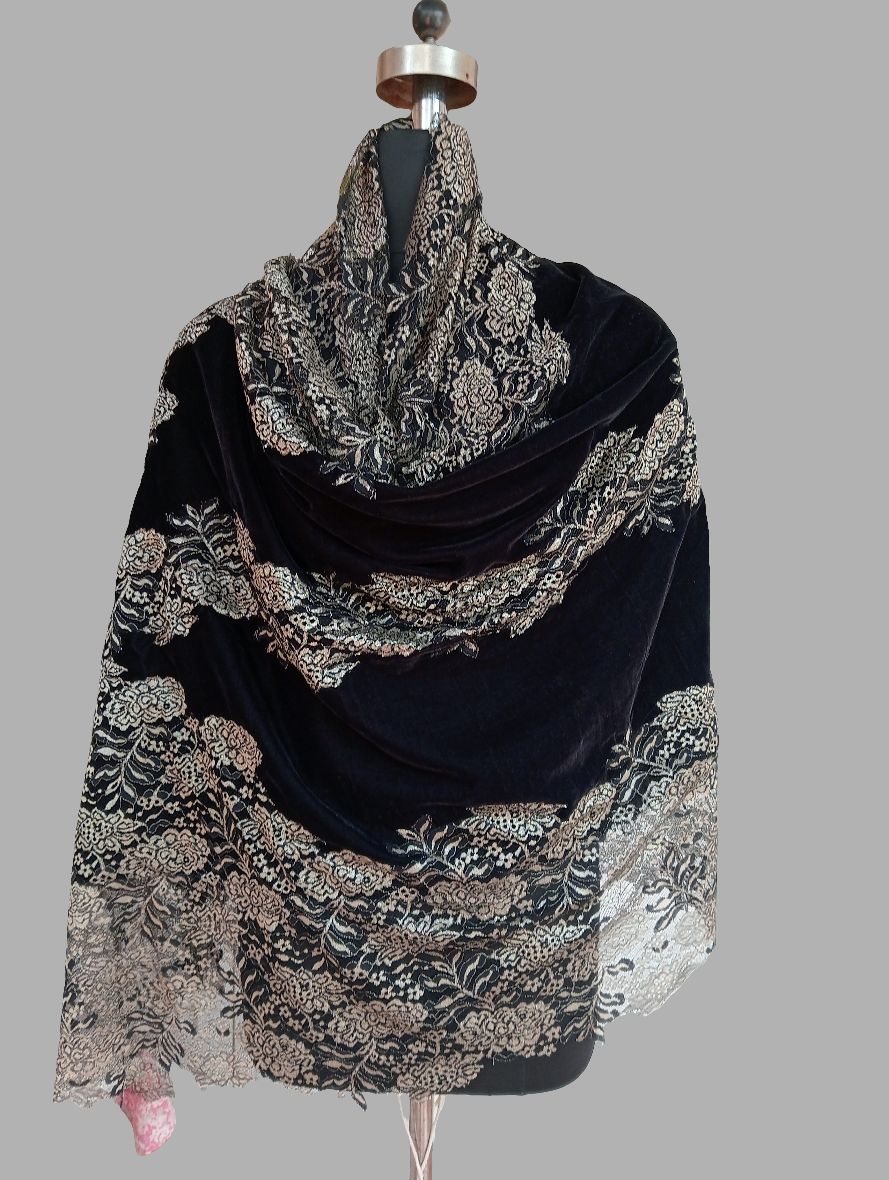 Velvet with zari lace stole