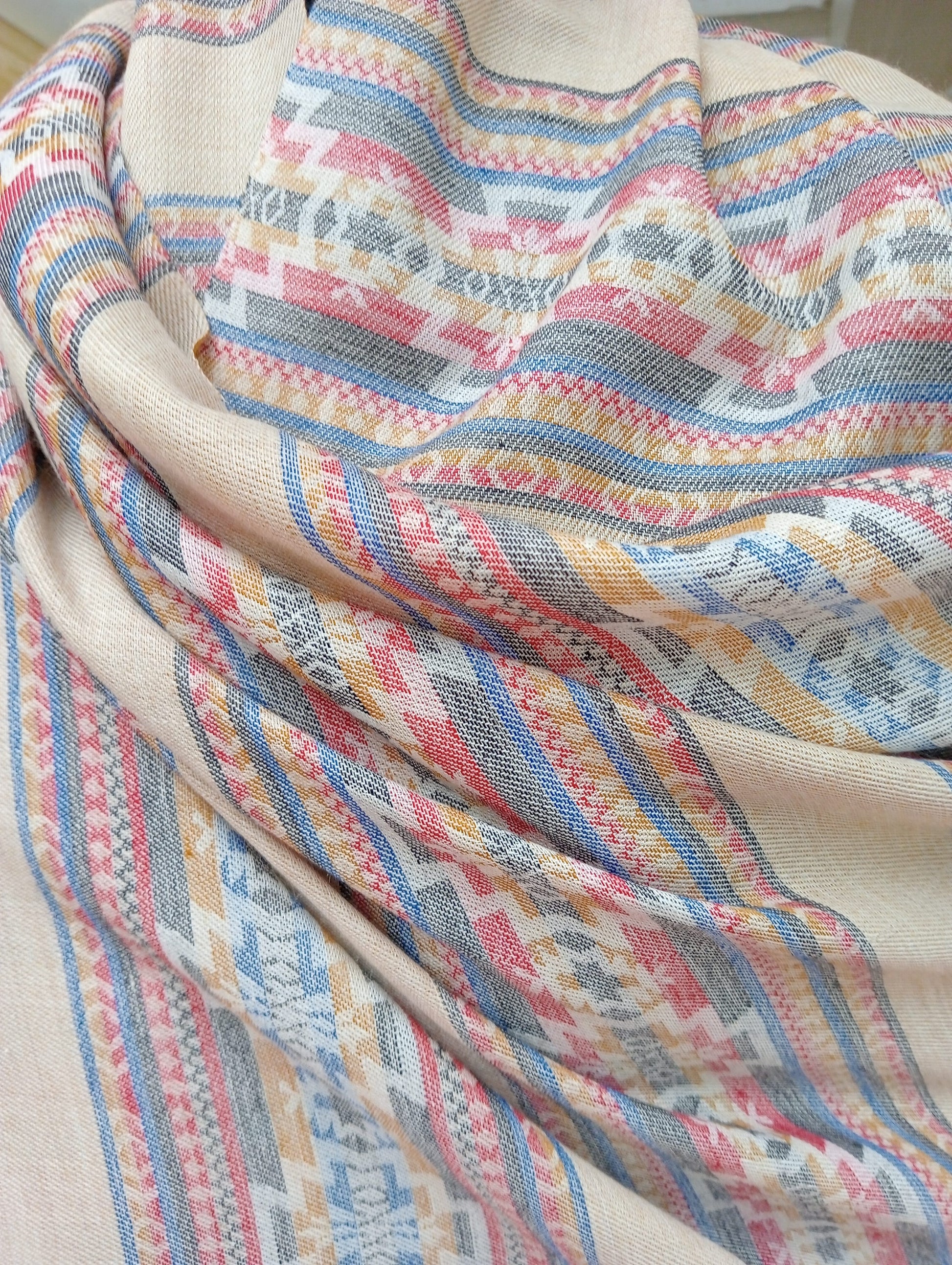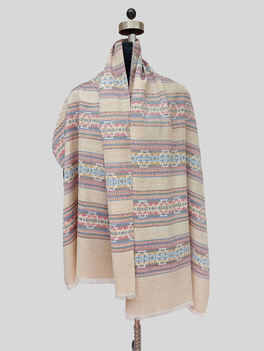 Ikkat Stole - Cream