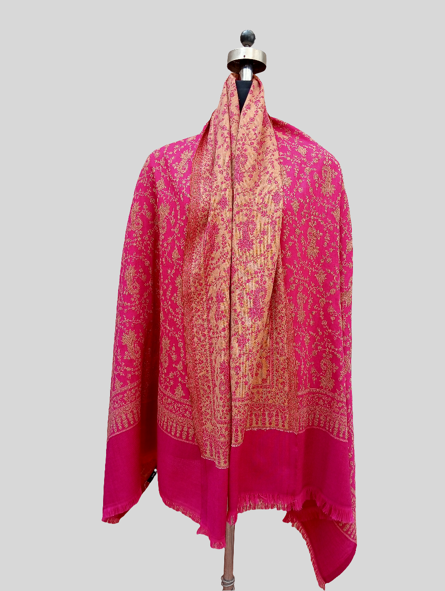 Reversible Woven Embroidered Shawl - Pink / Beige